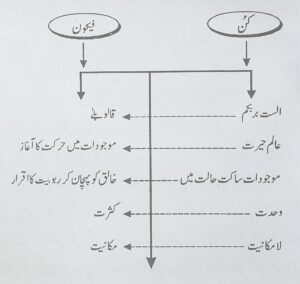 کائنات میں موجود تمام اشیاء، خواہ وہ جزوِ لاتجزاء کی حیثیت رکھتی ہوں…. اُن کی حیثیت روحانی ہو یا وہ خارجی حالات میں شکل و صورت میں ظاہر ہوں…. سب اللہ تعالیٰ کے ارادے کا عکس ہے۔ یعنی ساری کائنات اللہ تعالیٰ کے ارادے کی شکل و صورت ہے۔ اللہ تعالیٰ کے ذہن میں کائنات اور کائنات کے اندر مَوجودات کی تصویر اور ان تصویروں کی ضروریات جس طرح موجود تھیں وہ اللہ تعالیٰ کے ارادے کے ساتھ تخلیق ہو گئیں۔